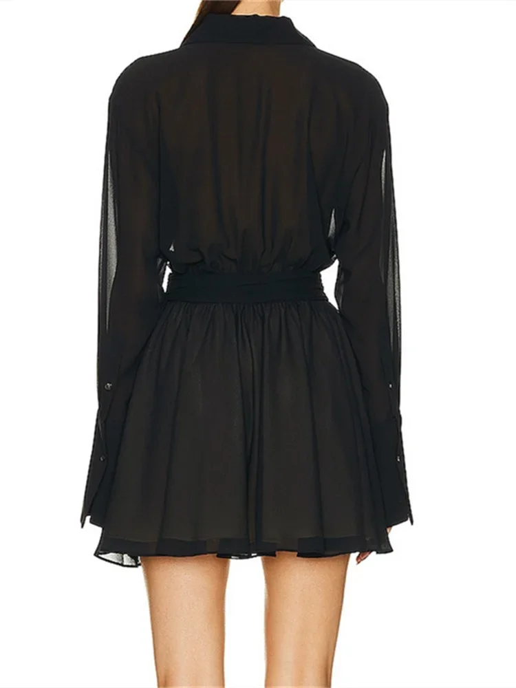 Women Elegant Shirt Dress Mesh Sheer