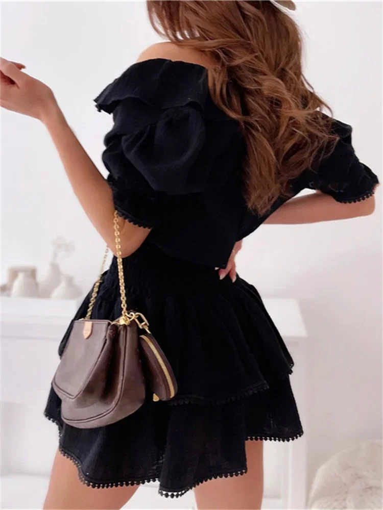 Women Summer White Dress Puff