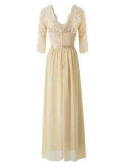 Women’s Long Dress Patchwork Lace V-neck Mid-Sleeve Backless Dress