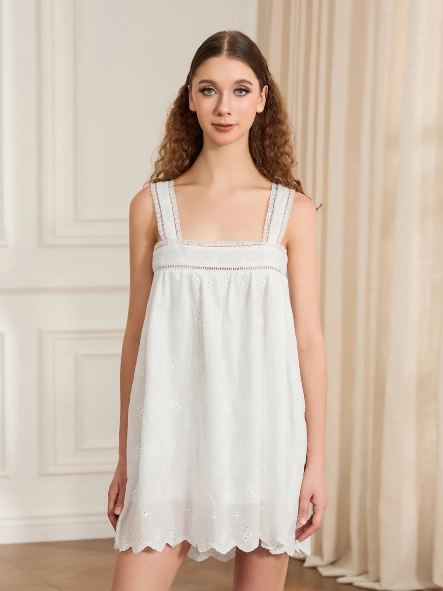 Women’s Dress Front Tie Bow Solid Lace Trim Sleeveless Loose Fit Mini Dress for Summer